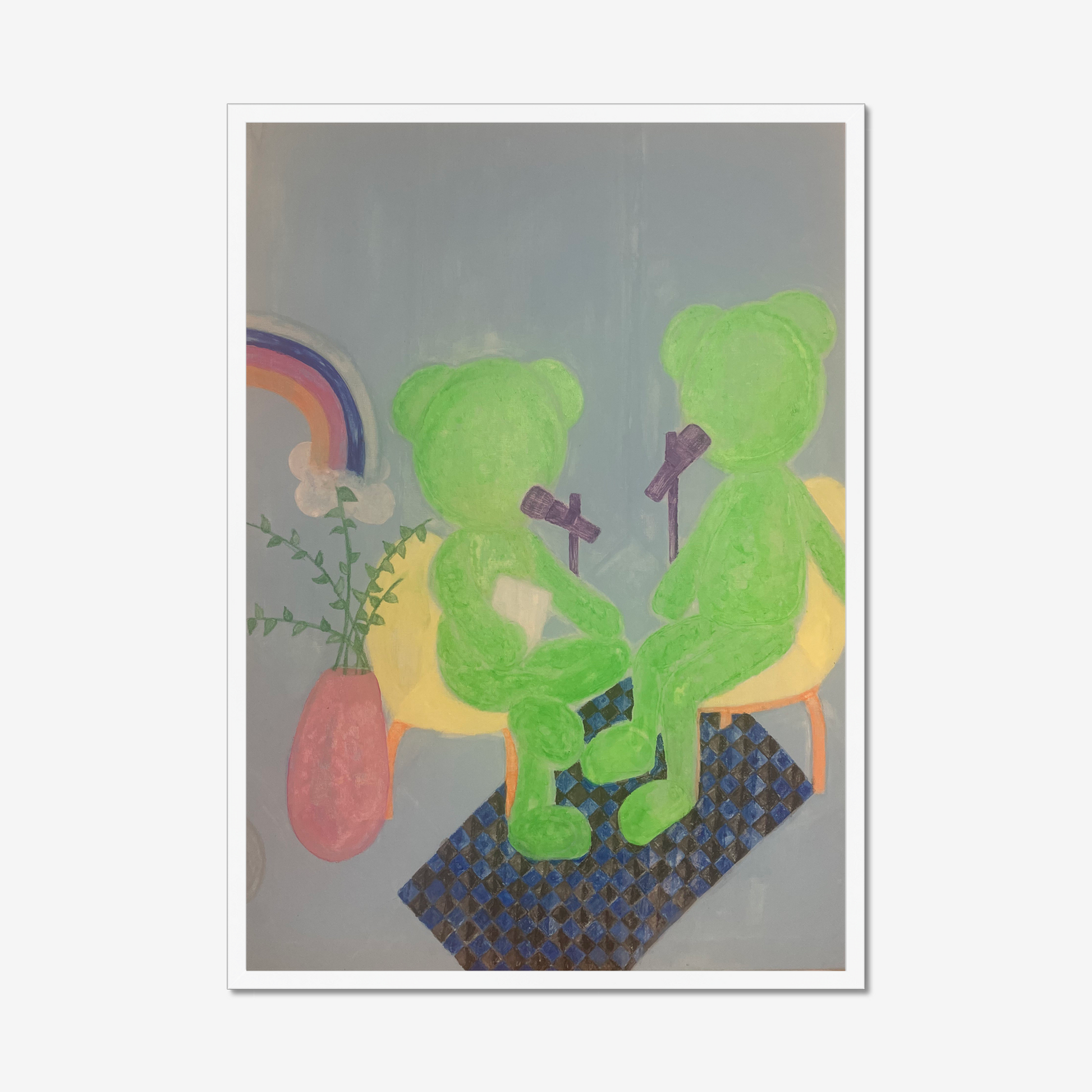 two teddy hearts lean close — their talkshow is a bridge to their soul beings."
